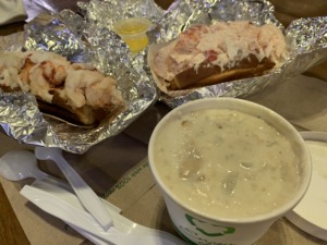旅の最後に、またロブスターロールとクラムチャウダーを食べました笑。あふれんばかりのロブスターのロブスターは旅の締めくくりにぴったりです!