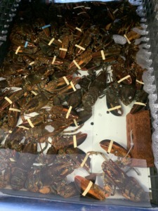 ロブスターの人形が目印のこのお店、店内はあまり広くないので持ち帰りとしましたが、中に生け簀があって、たくさんのロブスターがその中にいました。席は若干数あるのですが、基本的にはテイクアウトが主体のお店のような印象です。お昼の時間帯に行ったのですが、多くの人で賑わっていました。