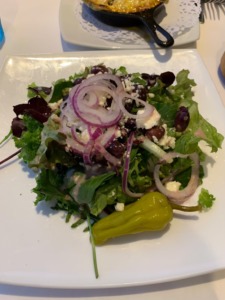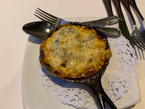 食事は、サラダとKeeshi Yena とGrilled and Served on the Stoneからラム肉を選びました。Keeshi Yena はレストラン検索をしていた時から気になっていたこのレストランのシグネチャーディッシュのようだったので、また、ラム肉はウェイターさんのおすすめで注文しました。