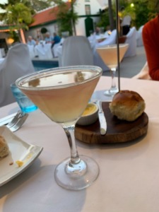まずは最初に一杯”カクテルをいただきました。綺麗な色でしょう。ほのかに甘い美味しいカクテルでした。
