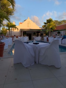 ランチの後は、昨日に引き続きプールとビーチに戻って、アルバを堪能しました(また、この日の午後にアメリカに戻るためのPCR検査を受けました)。その後、この日はアルバでの最後のディナーということで、少しいいレストランでディナーを食べたい!と思い、この「Papiament Restaurant」を予約。プールサイドに席を構えるステキなレストランで、多くの人で賑わっていました。