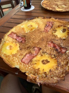 オランダ風パンケーキというのがどういうものか定義はわかりませんが、比較的薄めの生地に、フルーツなどをそのまま混ぜ込んだ感じでした。私が食べたのは左のパイナップルとベーコンのパンケーキ。あまじょっぱい感じでなかなかよかったです。