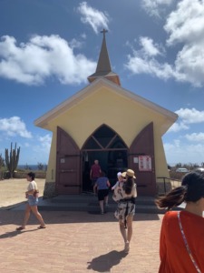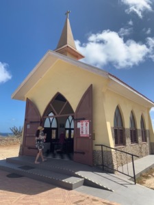 次に向かいましたのは、Alto Vista Chapelです。こじんまりとしたかわいらしい、アルバ最古の教会です。ぽつんと一軒家のような場所にありますが、ツアーバスなども多く止まっていて、そこそこ観光客はいました。綺麗なところなので、寄ってみるのをおすすめまします。
